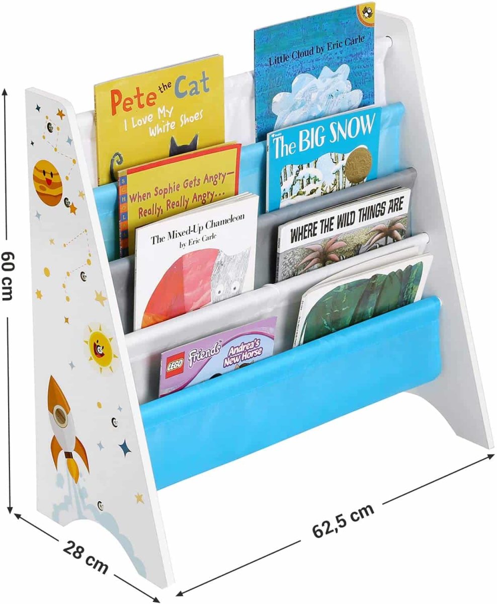 – Eerste stappen naar de maan: Planeten en sterren nemen uw kinderen mee naar een vreemd universum en inspireren hen hun boeken netjes in dit kinderkamerrek te bewaren