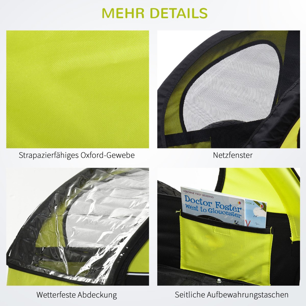 Fietskar – Kinderfietskar | Regenbescherming – Ademend Staal | Groen