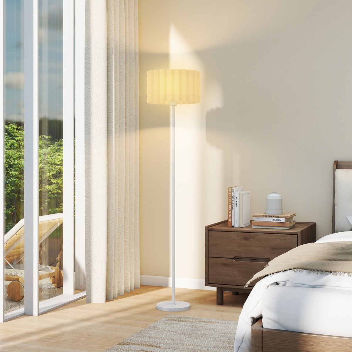 - Sterke materialen: De PVC lampenkap zorgt voor een zachte en gelijkmatige lichtverdeling, terwijl het metalen frame is afgewerkt met krasbestendige lak voor langdurig gebruik