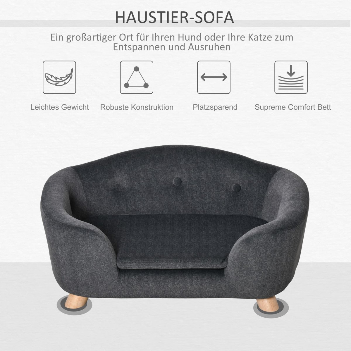 Deze luxueuze huisdierensofa combineert pluche, zachte bekleding met een stevig houten frame voor een robuuste en resistente kern. Uw huisdier zal zich direct thuis voelen op deze comfortabele sofa met dikke vulling die extra comfort biedt.