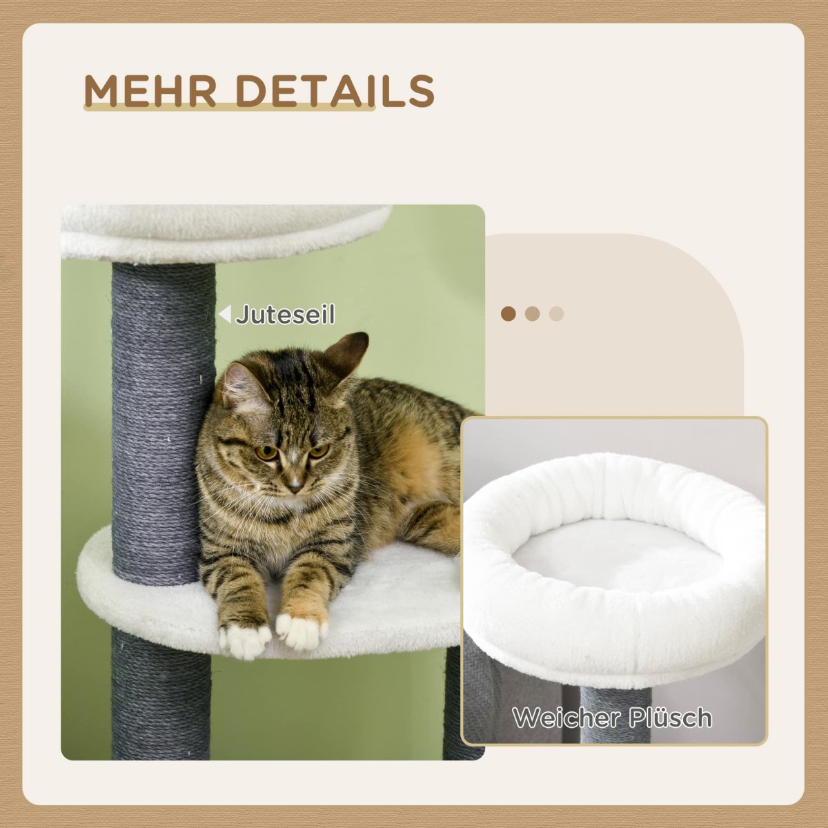 - Met zachte pluche bedekking op de lig- en slaapoppervlakken biedt deze krabpaal comfort en gezelligheid voor jouw kat.