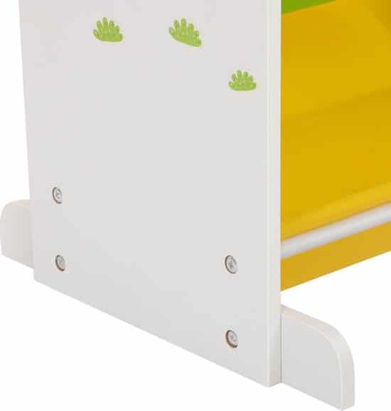 Dankzij de 6 opbergbakken kunnen kinderboeken, knuffels, blokken en ander speelgoed netjes worden opgeborgen en georganiseerd. Hierdoor ontstaat er een opgeruimde en overzichtelijke omgeving waarin kinderen gemakkelijk hun favoriete spullen kunnen vinden en opruimen. Bovendien draagt het bij aan de ontwikkeling van een opgeruimd en georganiseerd denkpatroon bij kinderen.