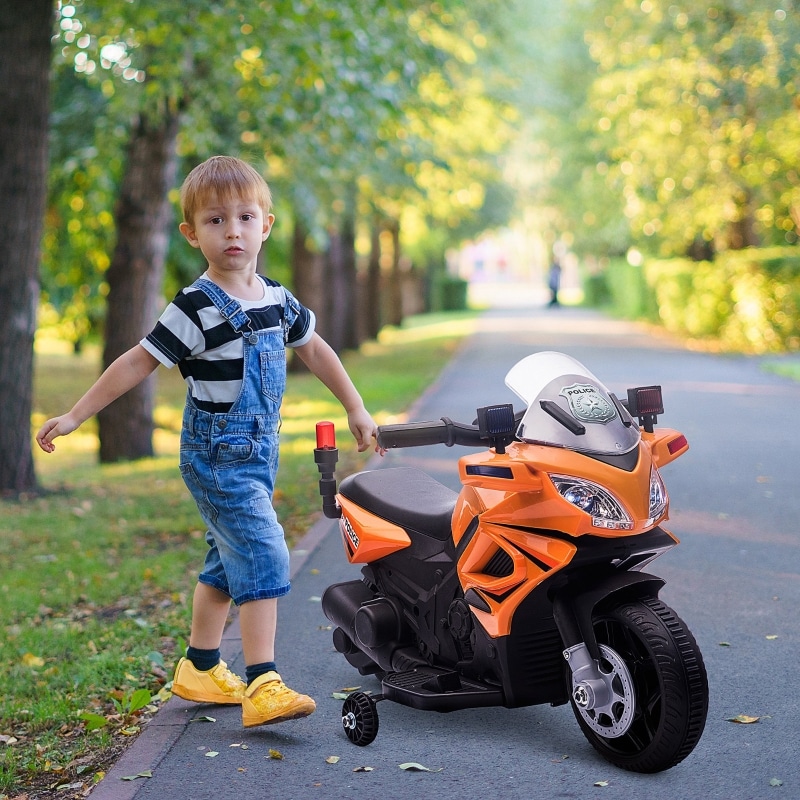 - Een toeter, werkende koplampen en politielichten simuleren een echte politiemotorfiets, waardoor je kind een realistische rijervaring beleeft.
