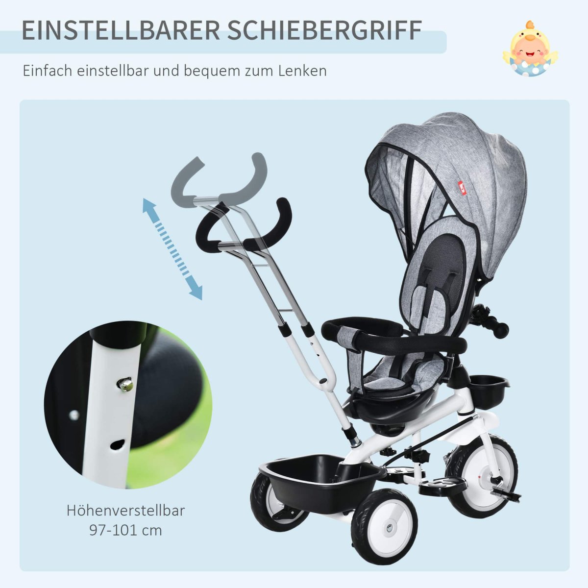 Deze 2-in-1 kinderwagen kan worden gebruikt als kinderwagen of driewieler, ideaal voor kinderen van verschillende leeftijden. De afneembare duwbeugel voor ouders en verstelbare rugleuning maken het eenvoudig aan te passen aan de behoeften van jouw kind.