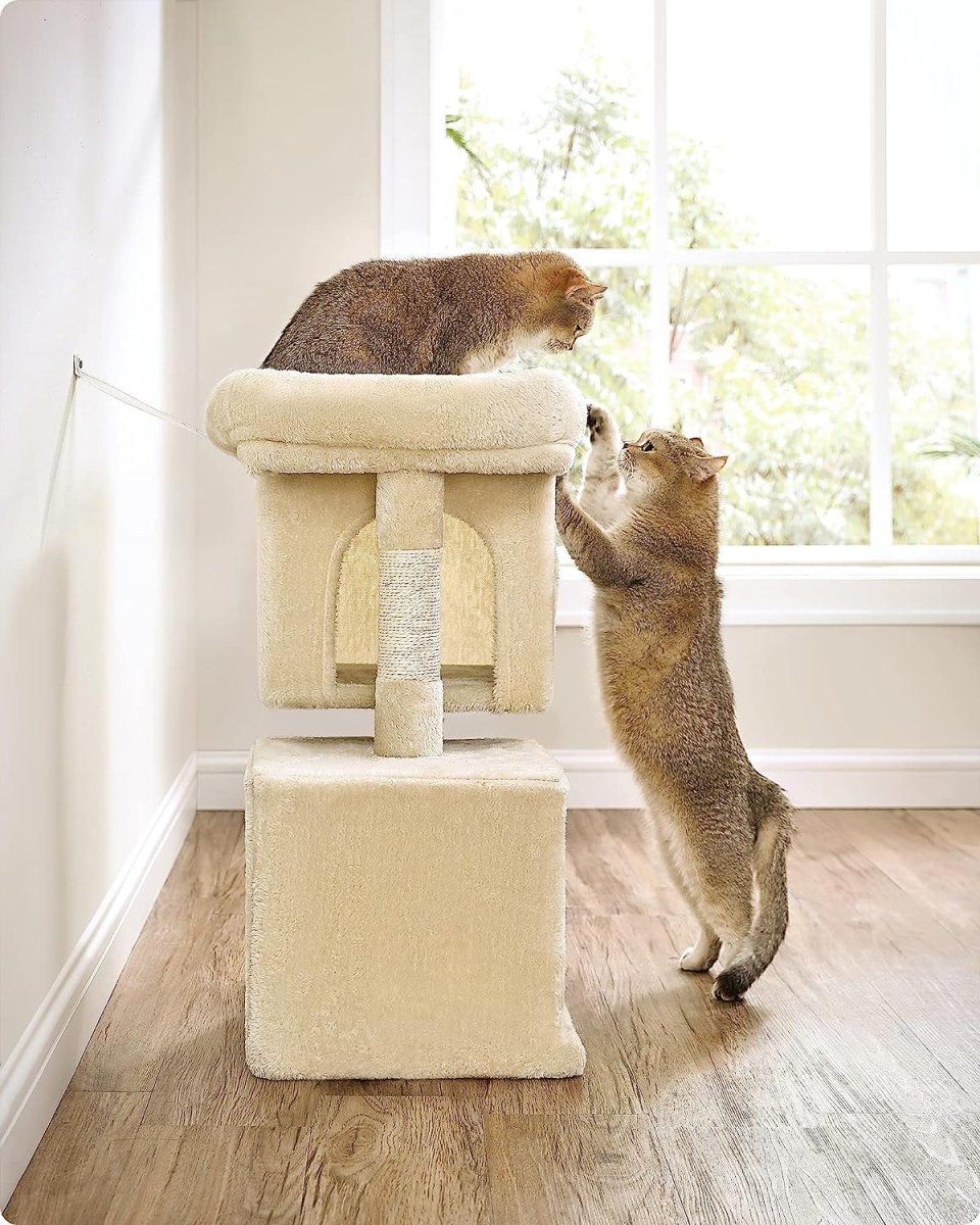 Deze Krabpaal Klein 67cm Krabpaal Kattenhuis voor Kittens tot 3kg Groot Platform Sisalpalen Beige is een perfecte oplossing voor kleine kittens tot 3kg. De krabpaal is 67 cm hoog en heeft een groot platform waarop je kat kan rusten en spelen. Het platform is gemaakt van stevig karton en is bekleed met een zacht beige stof. De krabpaal heeft ook vier sisalpalen die je kat kan gebruiken om te krabben en te spelen. De sisalpalen zijn stevig bevestigd aan de krabpaal en zorgen ervoor dat je kat veilig kan spelen. De krabpaal is ook voorzien van een kattenhuis waar je kat zich kan terugtrekken als hij of zij rust nodig heeft. Het kattenhuis is gemaakt van stevig karton en is bekleed met een zacht beige stof. De krabpaal is eenvoudig te monteren en is een perfecte oplossing voor kleine kittens tot 3kg. Productdetails: