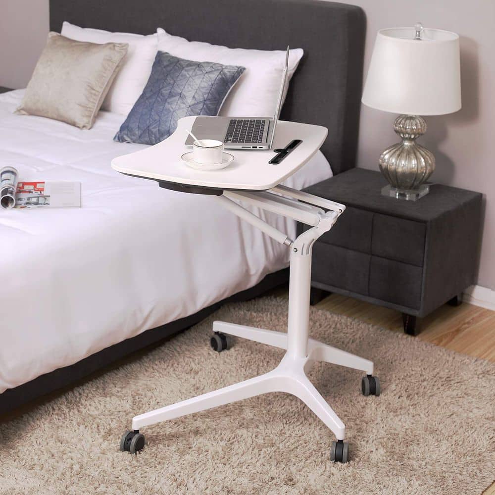 Laptopbureau – Verstelbaar Sta-bureau – Op Wielen – Zitbureau – Wit
