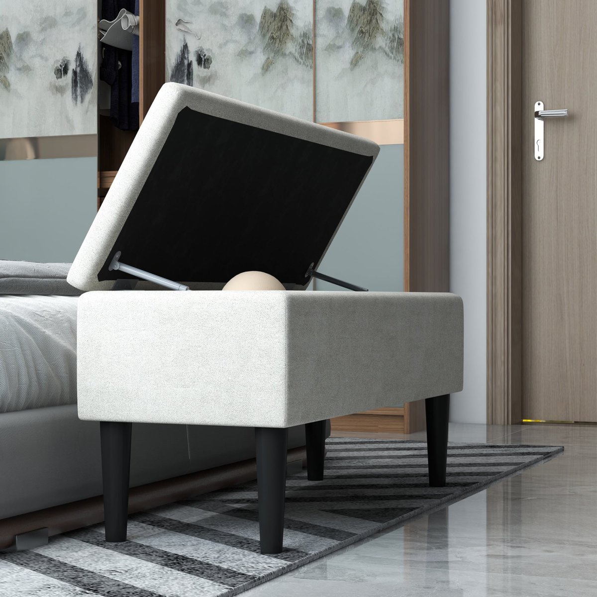 Opbergstoel – – Crèmekleurige bank met fluwelen look – Ideaal voor woonkamer
