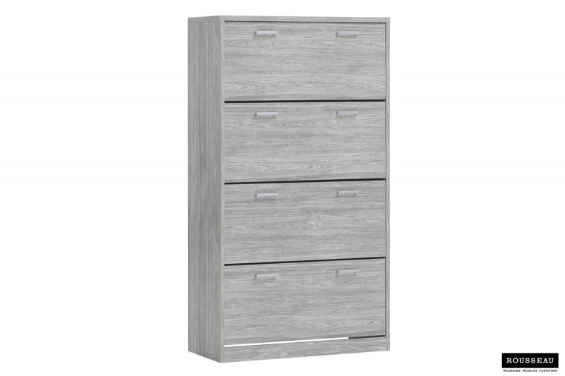 Schoenenkast ‘Spacio’ 4 laden Grijze eik is een elegante en functionele keuze voor moderne woonruimtes.