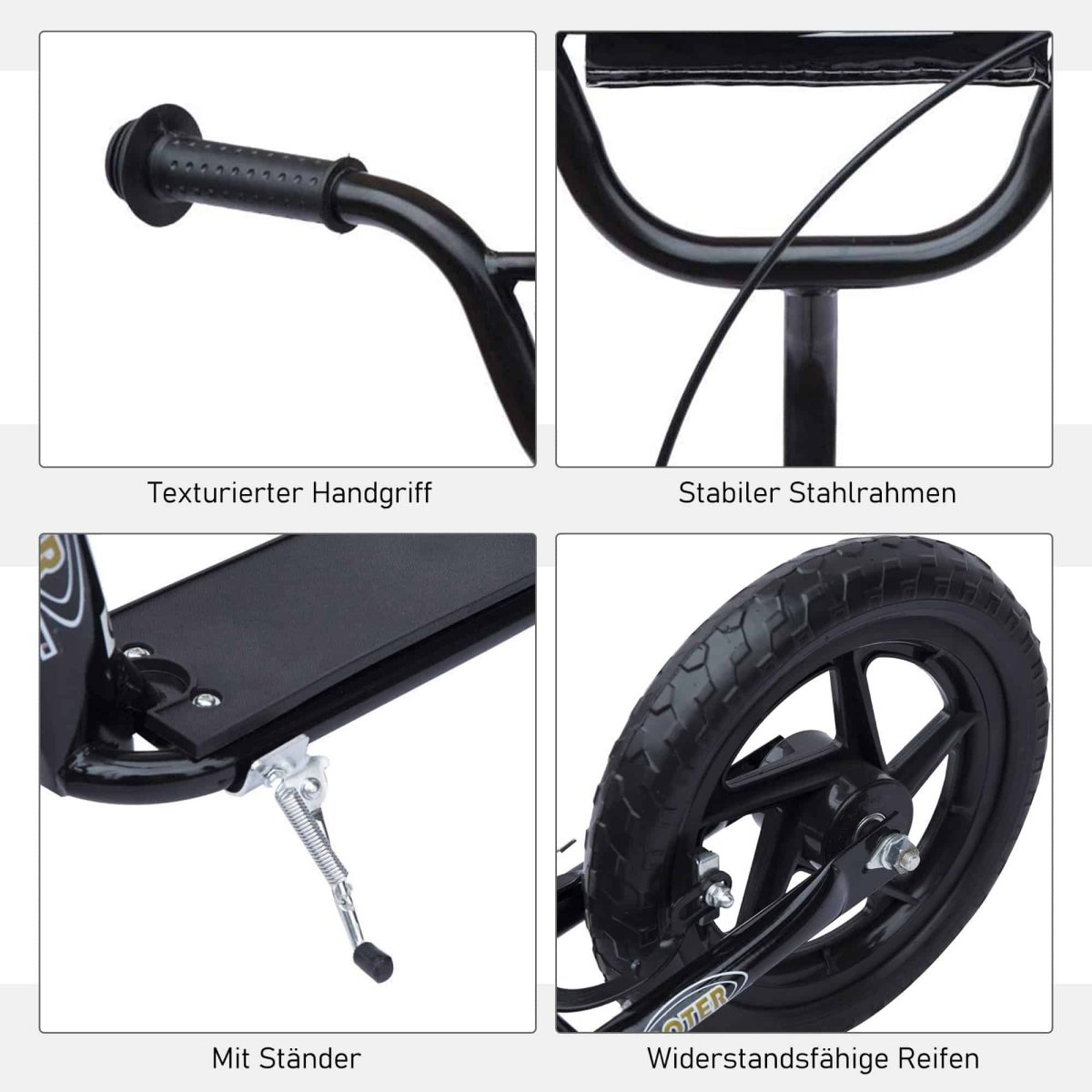 Met zijn 12″ velgen en EVA banden zorgt de Step – Scooty voor een vlotte en comfortabele rit. Dankzij de achterremmen en voetsteun kun je snel en veilig afremmen, wat zorgt voor een veilige rijervaring. Het massief metalen frame biedt stabiliteit en duurzaamheid, waardoor je langdurig plezier zult hebben van deze step.