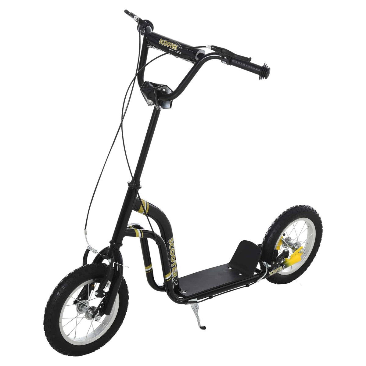 Deze zwarte inklapbare stadsscooter is uitgerust met antislip en slijtvaste rubberen wielen die opblaasbaar zijn voor een langdurig gebruik. Hierdoor kun je moeiteloos manoeuvreren op verschillende ondergronden en genieten van een comfortabele rit, waar je ook naartoe gaat.